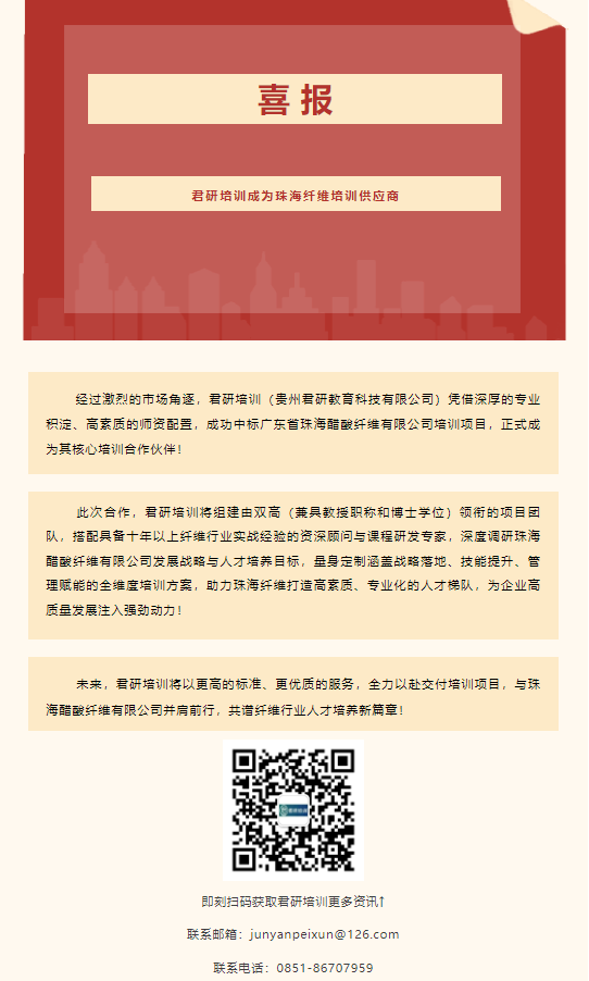 喜讯 | 捷报频传!君研培训成为珠海纤维培训供应商